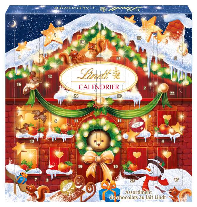 • V adventním kalendáři najdete: 3x Mini kuličky Gianduja Vanilla, 8x Mini kuličky z mléčné čokolády, 8x Mini kuličky s oříškovou náplní, 4x Mini kuličky s mléčnou náplní, 1x TEDDY s mléčnou náplní
