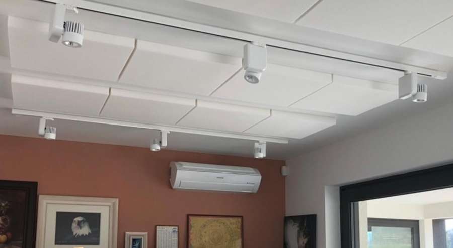 Postačí pokrýt cca 50% plochy stropu. Není nutno osázet úplně celý, aby došlo k markantnímu útlumu