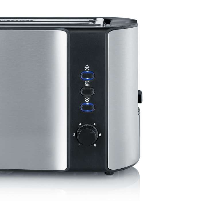 - výkon: 1400 W - tepelně izolované opláštění z nerezové oceli - barva: broušená nerez ocel/černá - elektronické nastavení opékacích stupňů s teplotním - nastavitelný termostat - pojistka proti vzpříčení chleba - přihrádka na kabel - tácek na drobky
