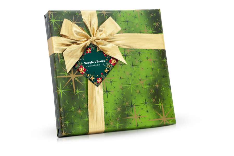 Belgické pralinky Veselé Vánoce, zelené s mašlí, 200 g