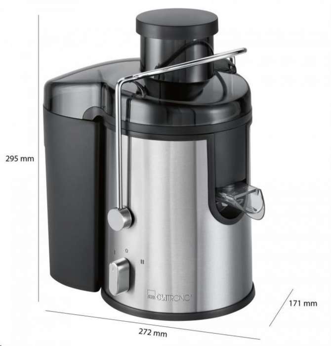 Profesionální automatický odšťavňovač z vysoce kvalitní nerezové oceli pro výrobu ovocných a zeleninových džusů bez nutnosti krájení. Odšťavňovač je vybaven hrdlem se zvětšeným průměrem na 65 mm. Lze ho provozovat ve 2 rychlostech pro různé tvrdosti ovoce a zeleniny. Odpadní nádoba na dužinu má kapacitu 1,5 litru. Díky nerezovému sítku, které zachytí veškeré pevné části, do skleničky proteče pouze dokonale čistý džus. Výhodou je výlevka, která je opatřena pojistkou proti kapání. Odšťavňovač lze spustit pouze se správně nasazeným hrdlem pro zajištění bezpečnosti. Je zajištěna vysoká stabilita. Odšťavňovač je konstruován pro snadné čištění a jednoduché použití. Napájení je 220-240 V, 50/60 Hz a výkon 400 W.