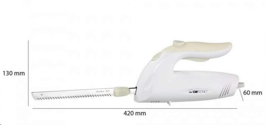 Nůž je vybaven vroubkovanými břity z nerezové oceli a je možné ho mýt v myčce nádobí. Elektrický nůž je vybaven bezpečnostním spínačem. Je jednoduchý na používání, není hlučný a nevibruje. Napájení je 230 V, 50 Hz.
