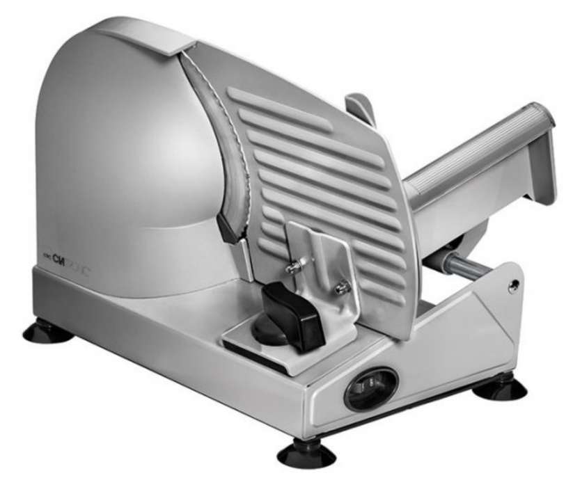 Nerezový kráječ s velkým vroubkovaným nerezovým nožem o průměru 19 cm. Plášť přístroje je vyroben z litého hliníku a zabraňuje tak prohýbání částí, které způsobují nerovnoměrné krájení. 2stupňový přepínač pro spuštění přístroje je vybaven i funkcí permanentního chodu. Kolejnice i saně (vozítko) jsou kovové, což dělá z kráječe velice robustní zařízení. Rukojeť je vybavena ochranu prstů. Šířku krájení lze nastavit v rozmezí 0-15 mm. Přísavné nohy zaručují vysokou stabilitu.
