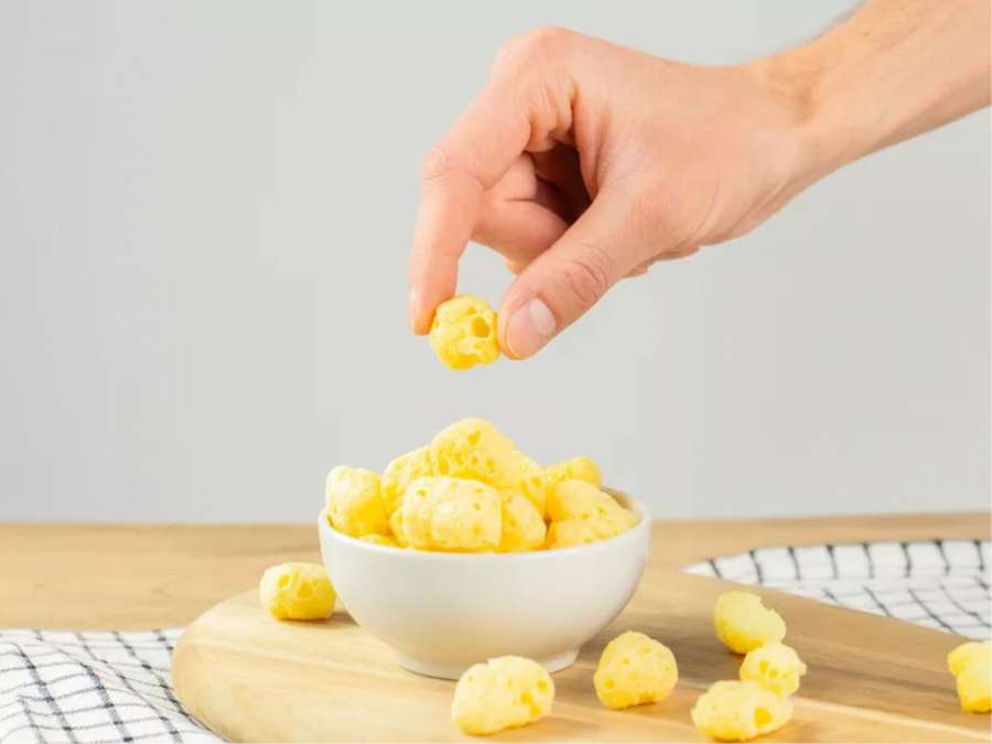 • Výsledkem je praktický snack do kapsy, který neobsahuje žádné přidané látky, je přirozeně bezlepkový a nabízí vysoký obsah bílkovin i vápníku.