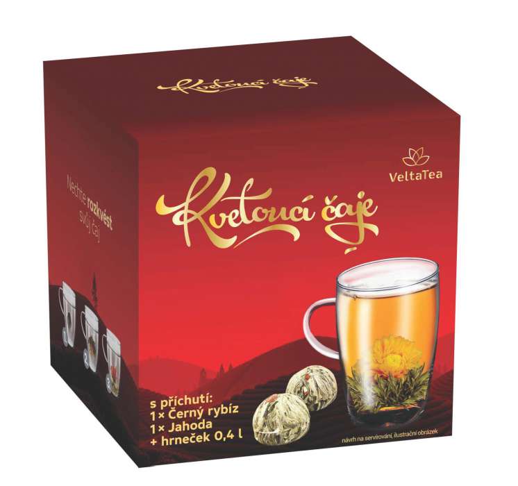 Sada obsahuje 2 ks kvetoucích čajů s příchutí: černý rybíz, jahoda