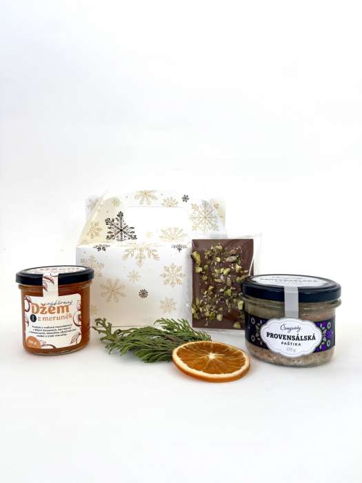 Sada obsahuje: Provensálská paštika, tabulková čokoláda od Lucie Glaister, meruňkový džem (150g)