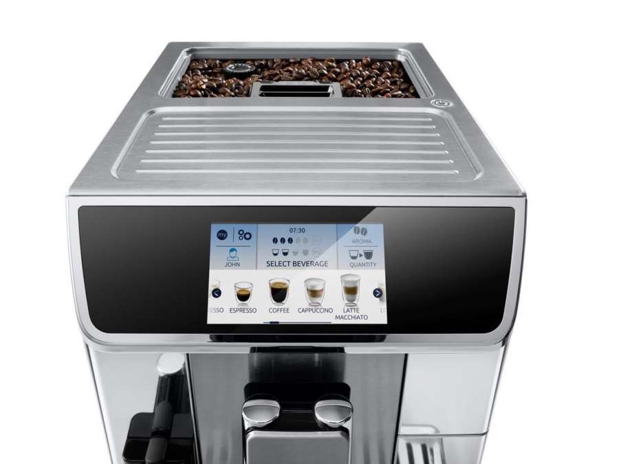 Automatický kávovar tlak 19 bar, mléčný systém, mlýnek na kávu, příprava dvou šálků najednou, bluetooth, displej, parní tryska, nahřívač šálků, nastavení množství vody, nastavení množství kávy, odvápňovací systém, samočisticí systém, automatické vypnutí, režim úspory energie a cappuccino a latte, objem nádržky na vodu 2 l, mechanismus mletí kónické kameny, velikost zásobníku mlýnku 400 g, stupně hrubosti mletí 13, šířka 26 cm, příkon 1450 W, výška 37,5 cm, hloubka 48 cm, hmotnost 12,5 kg, barva stříbrná a stříbrný.