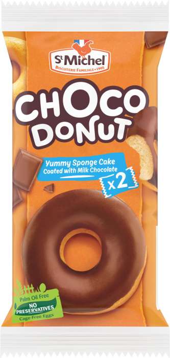• Nadýchané pečivo ve tvaru donutu s polevou z mléčné čokolády