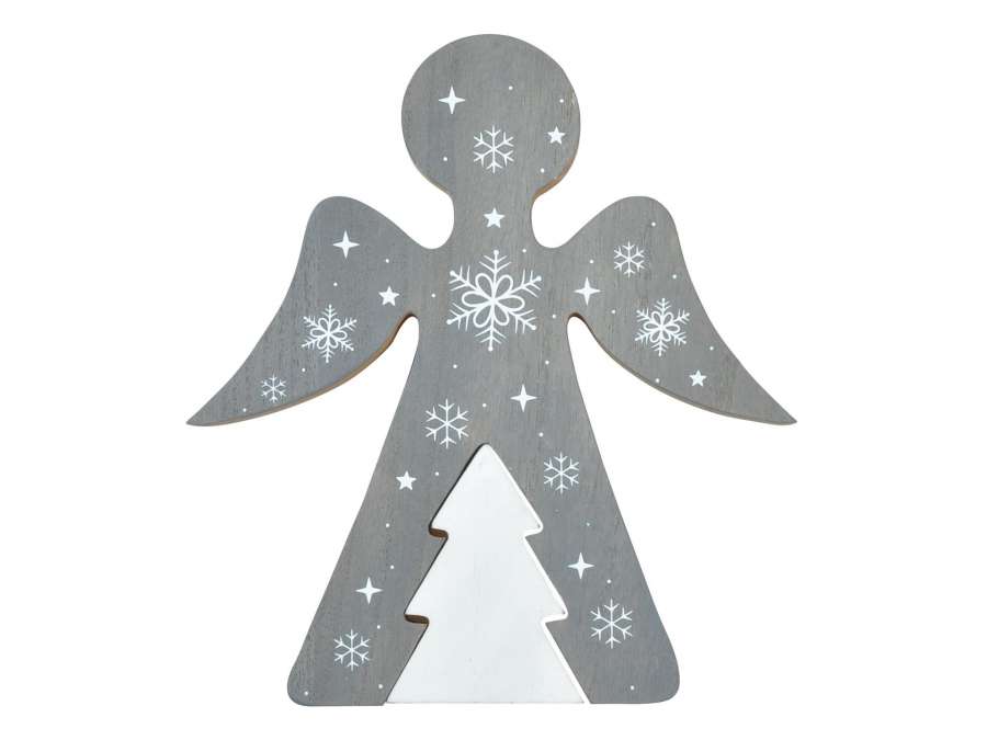 Dřevěný anděl, šedo-bílý, 19 cm