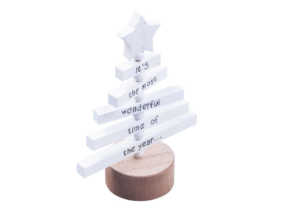 Vánoční dřevěná dekorace na postavení, stromeček v bílé barvě s nápisem „It's the most wonderful time of the year“