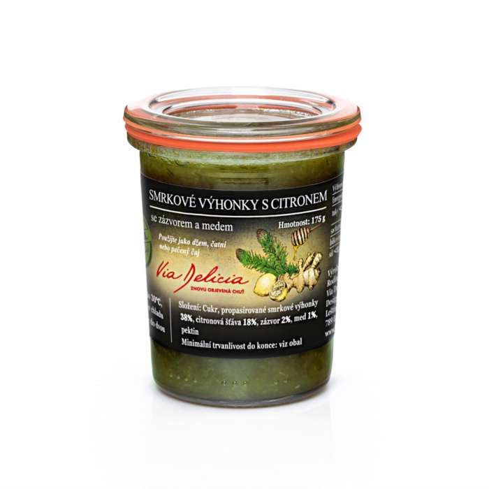 Neobvyklá delikatesa z mladých smrkových výhonků s citronem, zázvorem a medem.