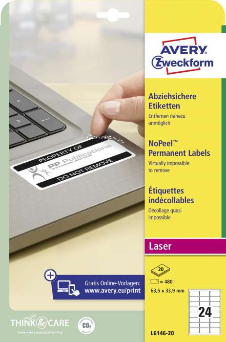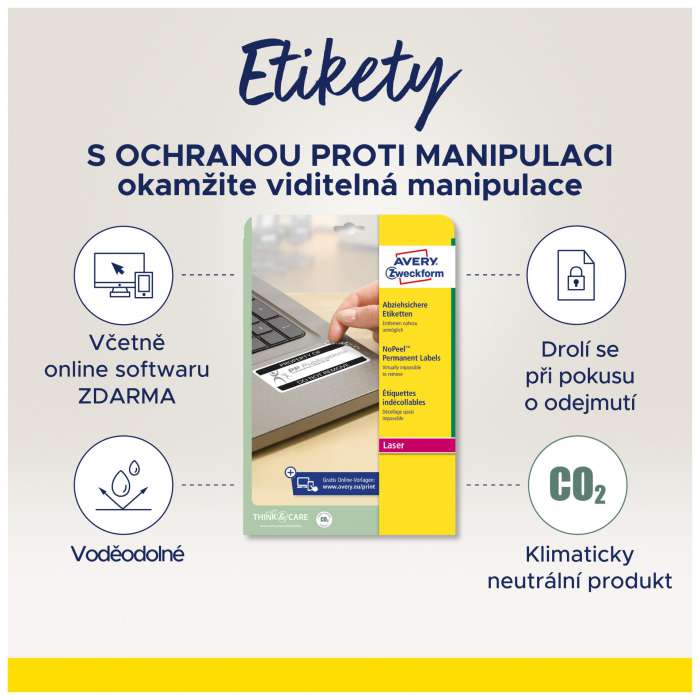 Etikety s ochranou proti manipulaci Avery Zweckform - bílé, viditelná manipulace, 63,5x33,9 mm,480ks