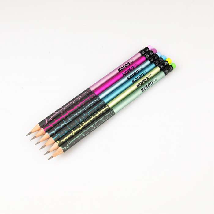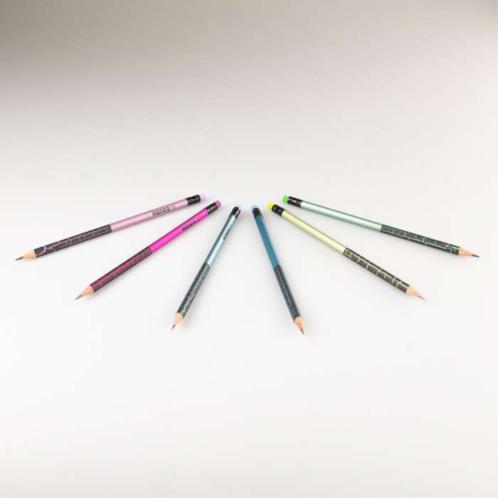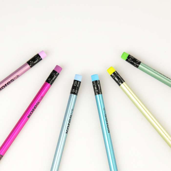 Sada 6 grafitových tužek v metalických barvách Včetně stylové pryže v barvě těla tužky...