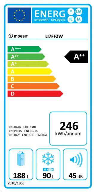 Spotřeba en. dle reg. EU 2011: 0,674kWh/24hod Mrazící výkon 3 kg/24 hod Akumulační doba 17 hod Hlučnost 45 dB Mechanické ovládání Antibakteriální ochrana Automatické odmrazování chladničky Poličky v chladničce: 2 (bezpečnostní sklo) Držák na víno 1 Zásuvky na zeleninu 1 Zásuvky v mrazáku 3 (transparentní) Z toho výsuvné,,3 Výrobník ledu 1 Kolečka 2 Nožičky 2 Možnost otočení otvírání dveří Barva bílá Rozměry: (V x Š x H) 178 x 60 x 68 cm