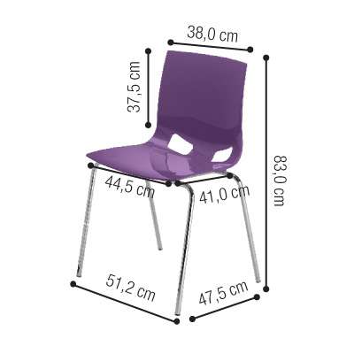 • Rozměry: šířka opěráku =38,0 cm; výška opěráku = 37,5 cm; šířka sedáku = 44,5 cm; hloubka sedáku = 41,0 cm; výška sedu = 45,5 cm; rozteč předních nohou = 51,2 cm