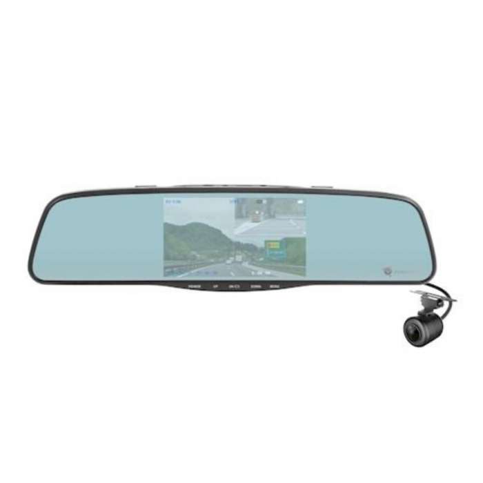 Z druhé strany zpětného zrcátka je umístěna záznamová kamera, která zaznamenává situaci před Vaším vozidlem, situaci za Vaším vozidlem zabezpečuje přídavná zadní kamera, která je součástí balení