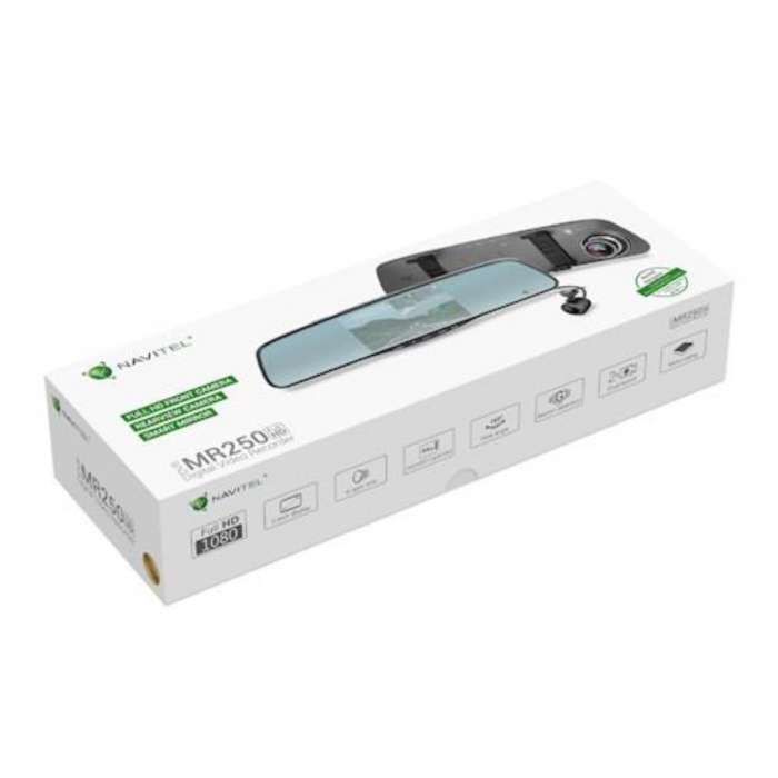 NAVITEL MR250 je 5-palcové odolné kovové zpětné zrcátko, které kombinuje prvky nezbytné pro bezpečné řízení