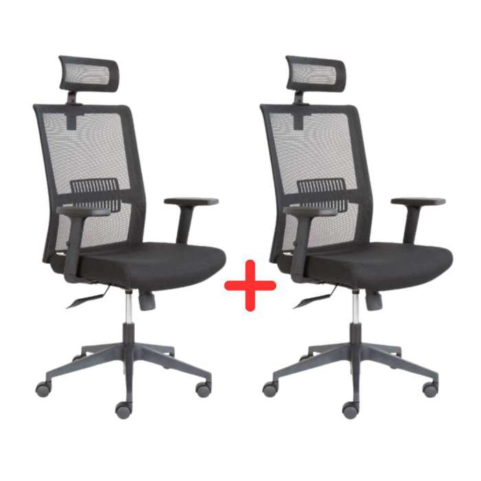 Moderní kancelářská židle s čalouněným sedákem a středně vysokým tvarovaným opěradlem z černé...