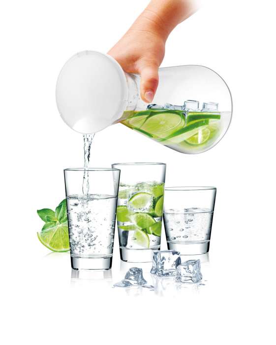 Víčko se štěrbinou ochrání nápoje v karafě a při nalévání je není třeba sundávat