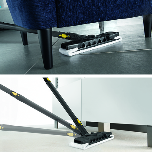 Optimální výsledek čištění na nejrůznějších tvrdých podlahách v domácnosti díky efektivní technice lamel. Ergonomické, efektivní čištění při plném kontaktu s podlahou při jakékoli tělesné výšce díky flexibilnímu kloubu hubice.