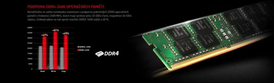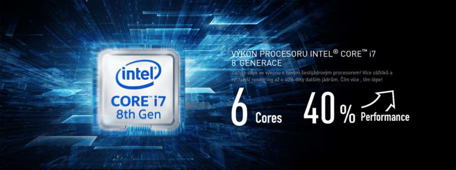 - 4jádrový procesor Intel Core i5-8300H (2.3GHz TB 4GHz HyperThreading)