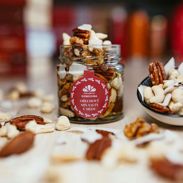 • Ořechový mix SALTY v medu z naší rodinné farmy Včelařství Domovina je slaďoučká dobrůtka se slaným ocáskem.