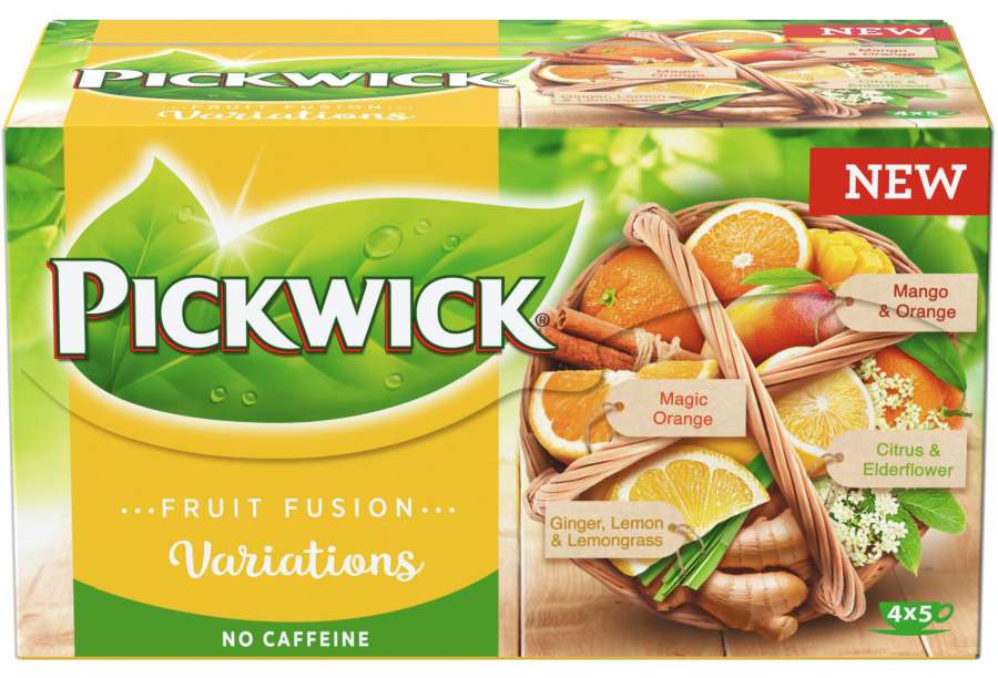Krabička čaje Pickwick Fruit Fusion nabízí uníkátní kombinaci 4 chuťových variant Krabička...