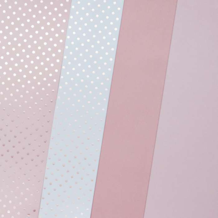 • Komplet obsahuje: 6 listů kartonového papíru s metalizovanými růžovými puntíky a 6 listů hladkého růžového kartonového papíru