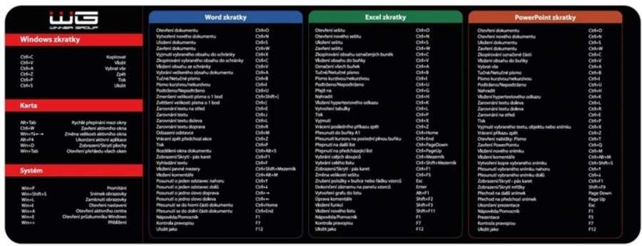 Počítačová podložka pod myš WG Zkratky nabízí dostatek prostoru pro kancelářskou práci