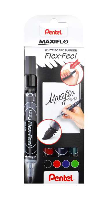 Popisovač na bílé tabule Pentel Maxiflo Feel Flex - sada 4 barev