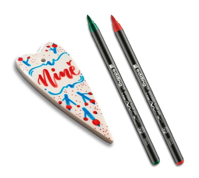 Porcelánová ozdoba ve tvaru srdce a 2 ks popisovače na zdobení porcelánu Edding e-4200 ve vánočních barvách Více informací