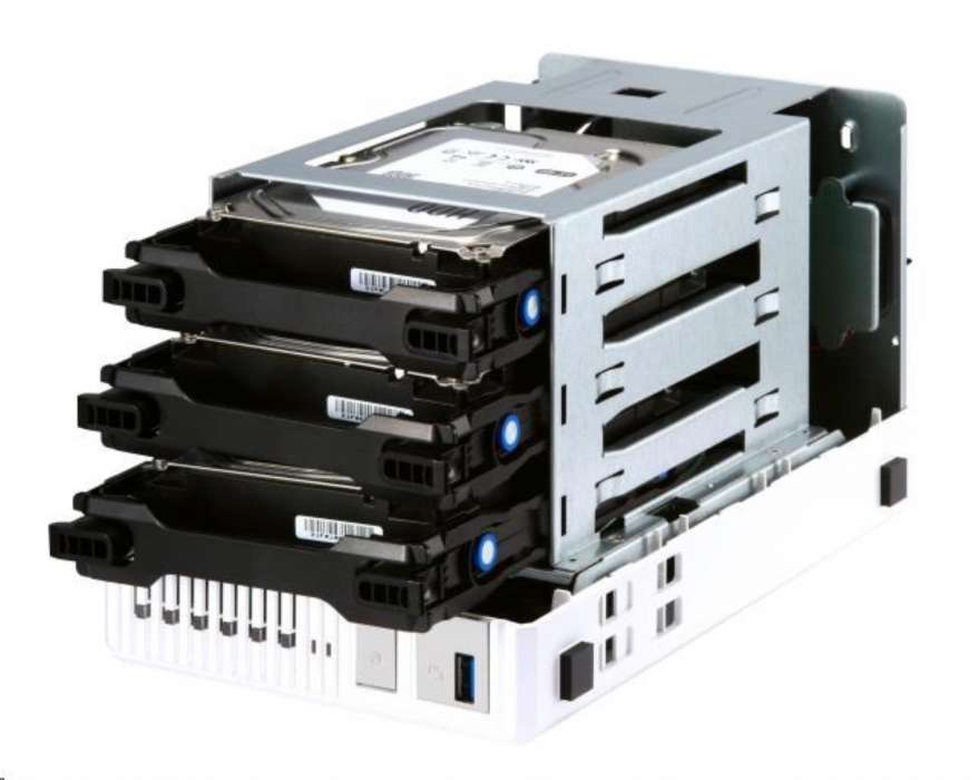 - Cenově efektivní 3-pozicové zařízení NAS s RAID 5 a dvěma sloty M.2 SSD (PCIe Gen2 x1), kombinující funkce multimediálního centra s efektivním úložištěm s automatickým stupňováním