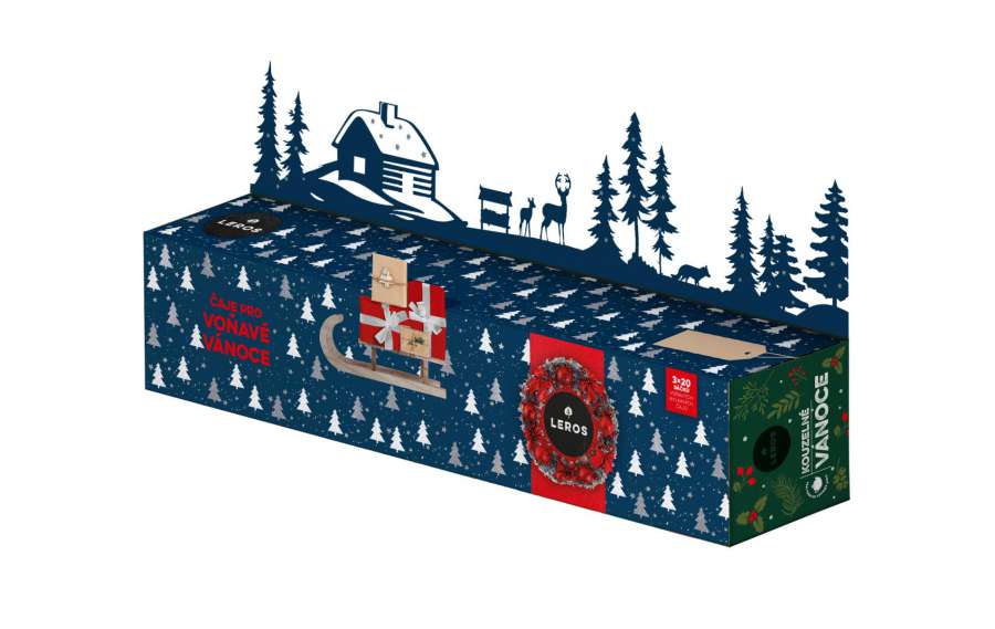 Papírový rukáv se 3 krabičkami po 20 sáčcích (celkem 60 čajů) s příchutí Hruška a rybíz, Ranní zahřátí, Kouzelné Vánoce