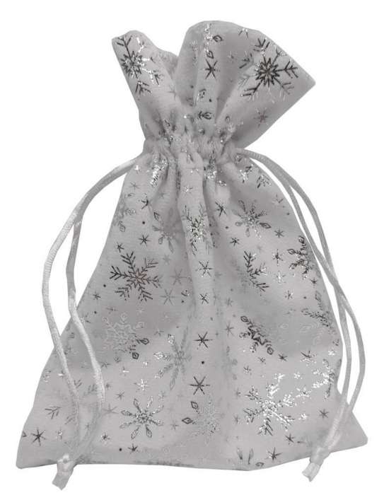 Sametový bílý sáček, stříbrné vločky, 20 x 15 cm