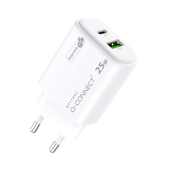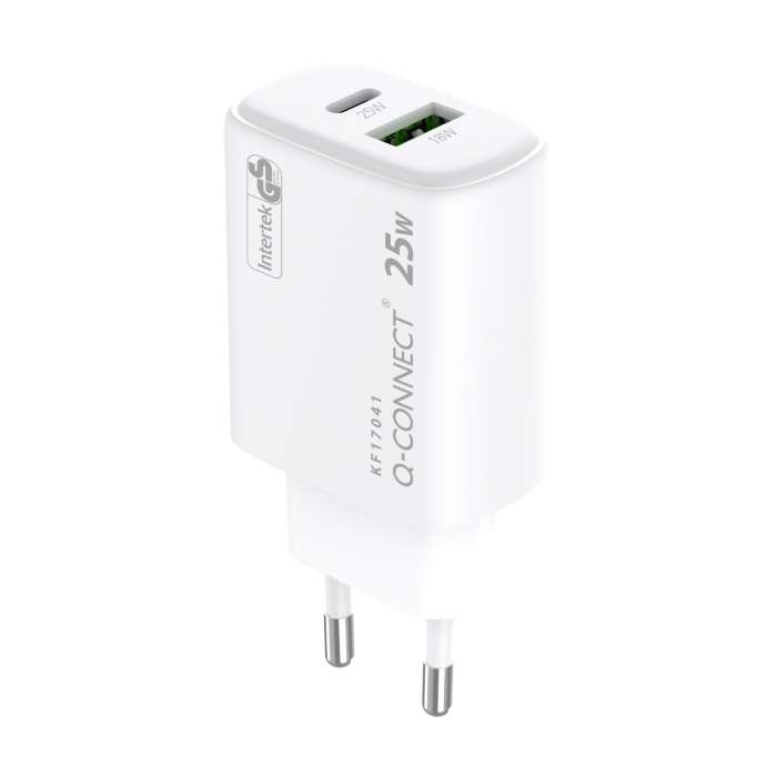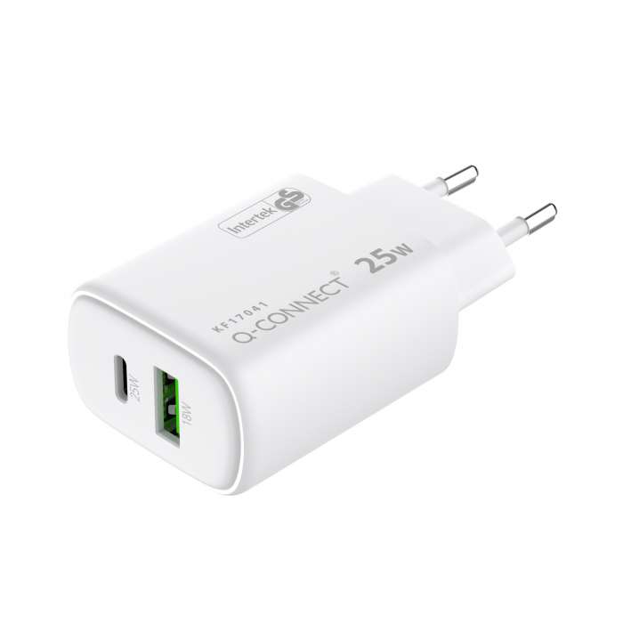 Síťový adaptér Q-Connect GaN - 25W , 1x USB-C a 1x USB-A, bílý