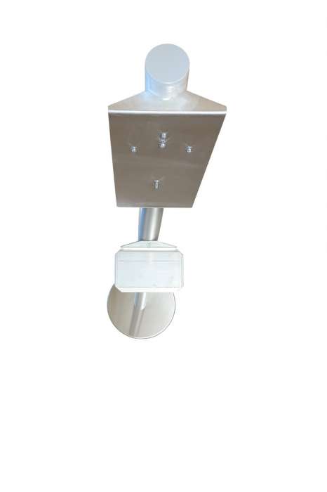 Kovový stabilní stojan vhodný pro připevnění plastového bezdotykového zásobníku na dezifekci...