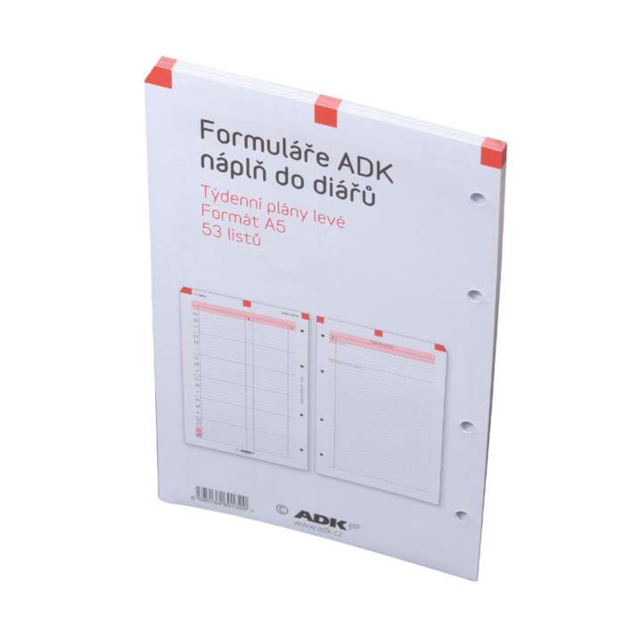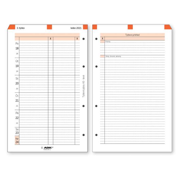 Každý týden na jeden list (1. strana přehled celého týdne, 2. strana - volné řádky na poznámky)...
