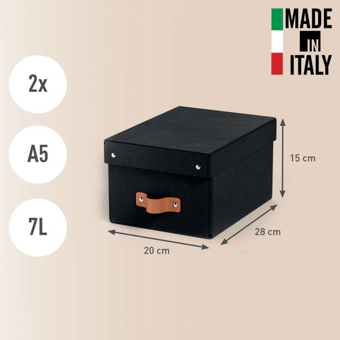 • Dekorativní sada dvou úložných boxů pro přehledné ukládání dokumentů A5, drobné elektroniky, hraček nebo osobních věcí