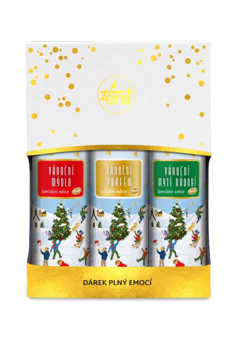 Sada obsahuje: Vánoční mýdlo - šetrně myje ruce a nevysušuje pokožku, vánoční parfemace (300 g), Vánoční parfém - osvěžovač vzduchu s vánoční parfemací, nezanechává kapičky, rozprašovač bez hnacího plynu (300 ml), vánoční nádobí - odstraňuje nečistoty a mastnotu, praktické dávkování, vánoční parfemace (300 g)
