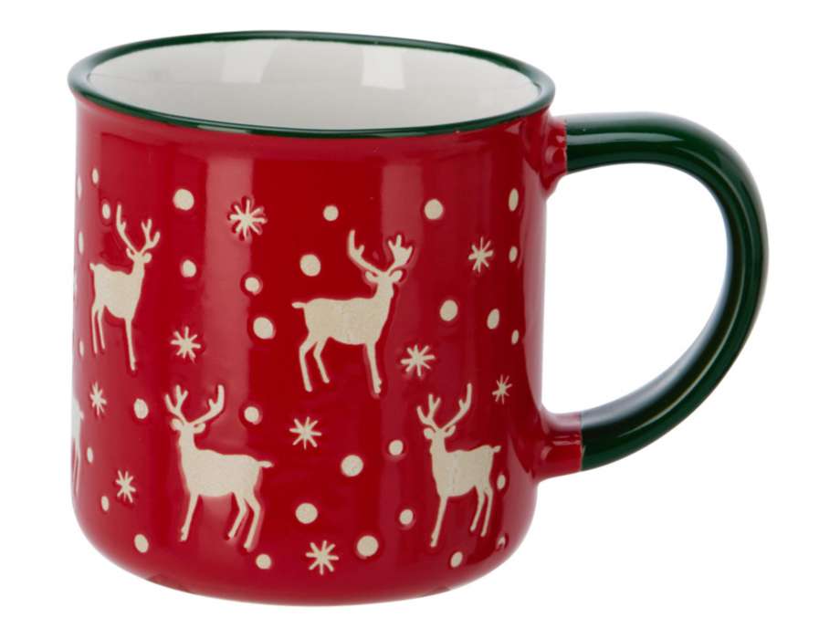 Keramický hrnek s vánočním motivem, jelen, vločka, stromek