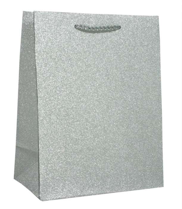 Vánoční taška, glitter, stříbrná, 25,5 x 18 x 10 cm