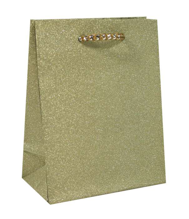 Vánoční taška, glitter, zlatá, 11,5 x 14,5 x 6,5 cm