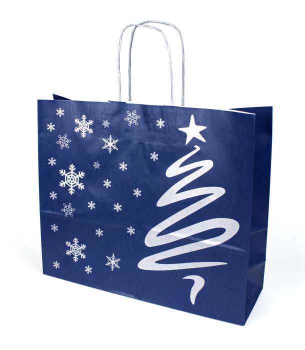 Vánoční taška, modrá se stromečkem, 36 x 12 x 31 cm