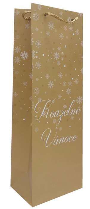 Zlatá dárková taška s bílým nápisem Kouzelné Vánoce