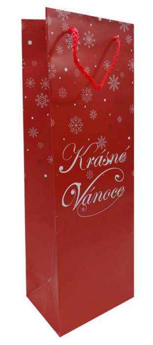 Červená dárková taška s bílým nápisem Krásné Vánoce