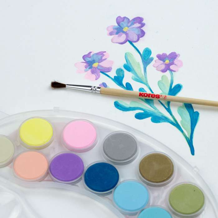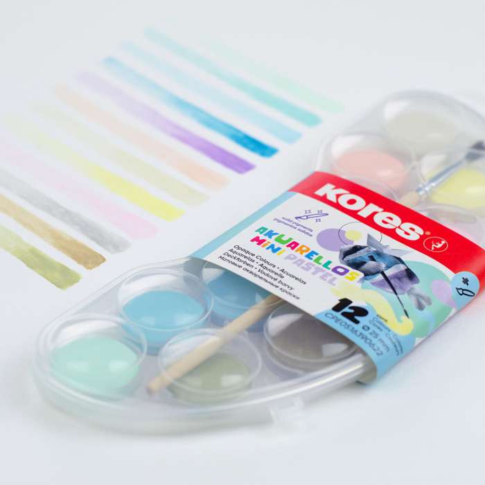 Vodové barvy o průměru 30 mm 12 intenzivních a zářivých barev s vysokou krycí schopností...