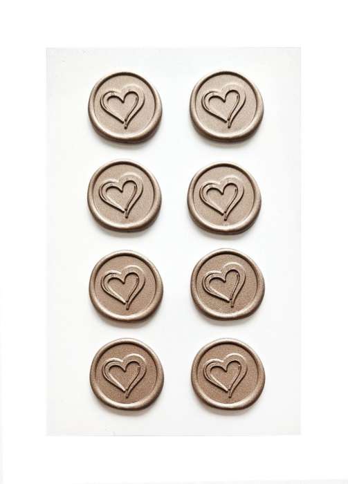 Vosková samolepicí pečeť - srdce, zlaté, 8 ks