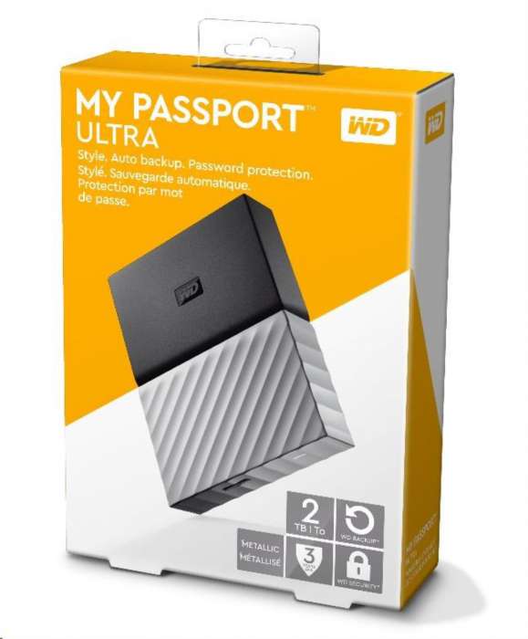 Disk My Passport™ Ultra představuje důvěryhodné přenosné úložiště, které přináší promyšlený styl kombinující kovový a matný povrch. Velké množství úložného prostoru pro ukládání oblíbeného obsahu, software WD Backup™ a ochrana heslem pomáhají udržovat všechny vaše vzpomínky v bezpečí. Snadné použití – stačí zapojit a můžete začít ukládat a zálohovat.