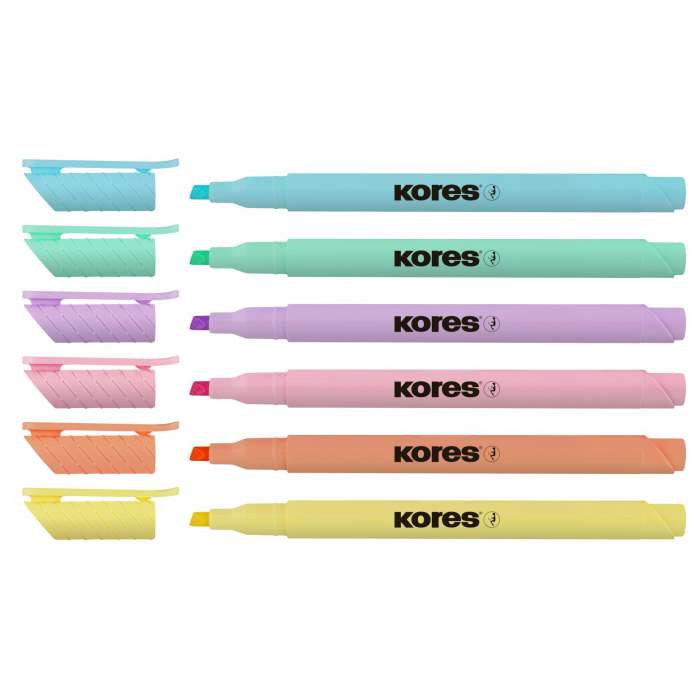 Zvýrazňovač Kores - sada 6 pastelových barev, silný